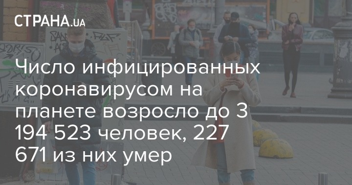 Число инфицированных коронавирусом на планете возросло до 3 194 523 человек, 227 671 из них умер