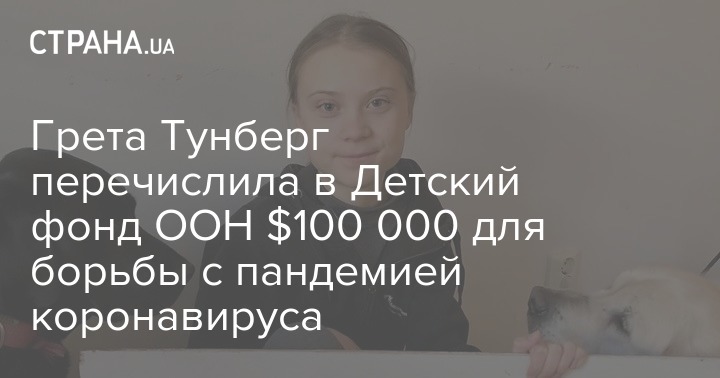 Шведская экоактивистка Грета Тунберг, которая считает, что коронавирус оздоровил планету за короткое время, пожертвовала на борьбу с ним 100 000 долларов. Эти деньги получит Детский фонд ООН для борьбы с пандемией коронавируса.