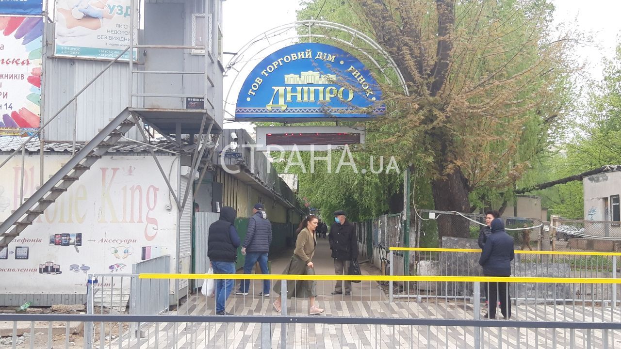 09:31 Рынок "Днепр" на Борщаговке, ул. бульвар Кольцова 12, закрыт (на фото ниже). Об этом сообщает корреспондент "Страны". В 09:00 на рынке начали собираться предприниматели. Говорят, что идут на собрание, где будут обговаривать возможное открытие рынка, но конкретной даты не называют. К входу в рынок периодически подходят люди и спрашивают, когда он начнёт работать, на что охранники говорят, что ничего не знают.