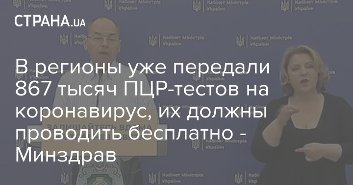 В регионы уже передали 867 тысяч ПЦР-тестов на коронавирус, их должны проводить бесплатно - Минздрав