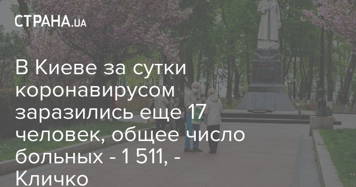 В Киеве за сутки коронавирусом заразились еще 17 человек, общее число больных - 1 511, - Кличко