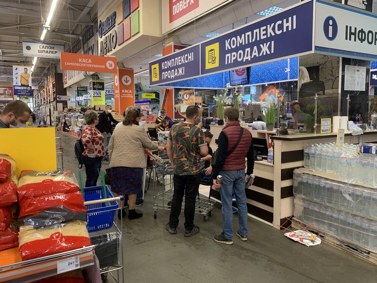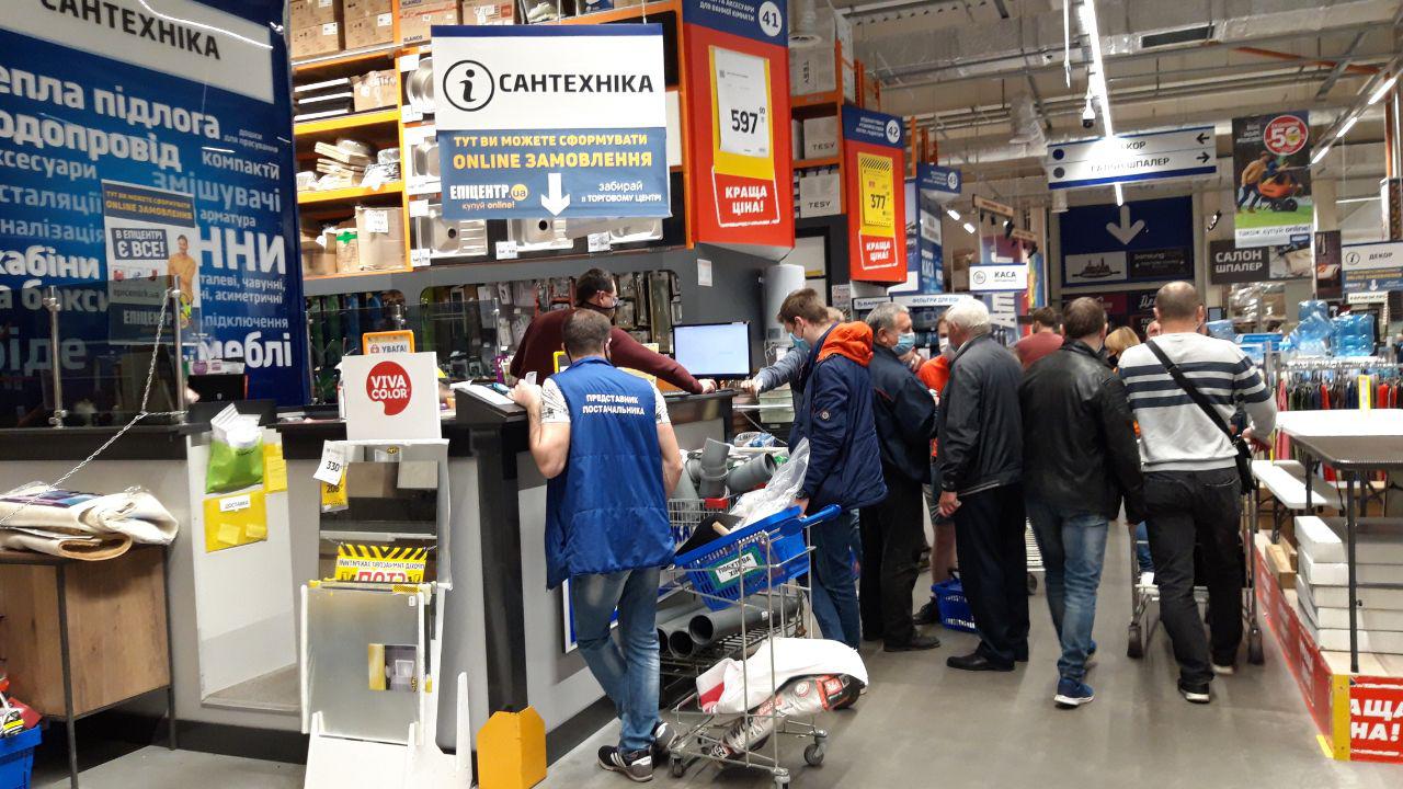 11:41 После того, как журналист "Страны" начал фотографировать и снимать на видео, охранник закрыл вход в "Эпицентр" на Григоренко, и теперь туда пропускают только сотрудников магазина. "Там очень много людей", - аргументирует охранник. Люди в очереди разворачиваются и уходят со словами "ну что за цирк".