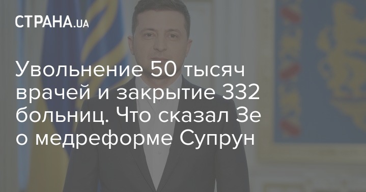 "Из-за нового механизма финансирования может быть уволено до 50 тысяч медиков и закрыто 332 больницы по Украине", - сказал Зеленский. Также, по его словам, почти тысяча больниц получит намного меньшее финасирование, чем в прошлом год.