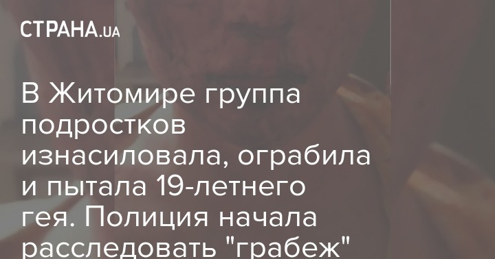 В ночь на 30 апреля в Житомире группа людей изнасиловала, ограбила и пытала 19-летнего гея. Сначала преступник был один, но потом к нему присоединились пятеро друзей. Полиция квалифицировала это дело по статье 186 ("Грабеж").