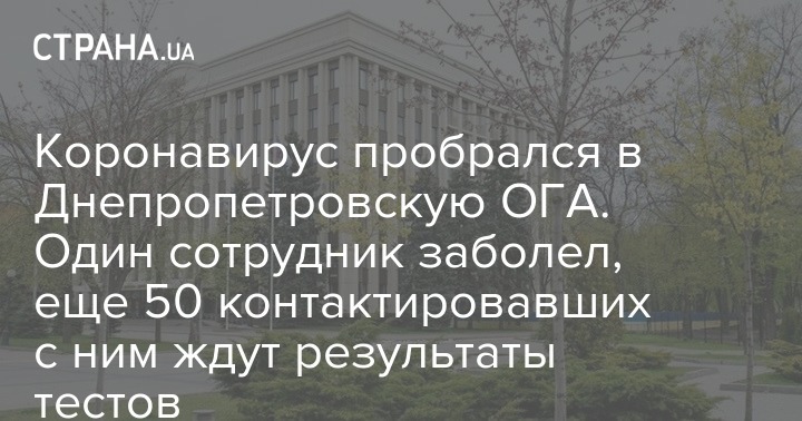 "У одного из сотрудников Днепропетровской ОГА лабораторно подтвердили COVID-19. Сейчас результатов ПЦР-теста ожидают еще более 50 работников, контактировавших с больным. Сейчас максимальное количество сотрудников облгосадминистрации перевели на удаленный режим работы. Среди них и контактные лица", - сообщил Александр Бондаренко.