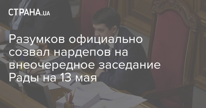 Председатель Верховной Рады Дмитрий Разумков подписал распоряжение о созыве внеочередного пленарного заседания парламента в среду, 13 мая. Документ опубликован на сайте Верховной Рады.