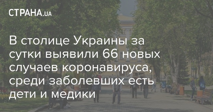 На 66 человек увеличилось количество выявленных случаев коронавируса в Киеве. Среди заболевших за сутки - шесть медработников и пятеро детей. 26 из числа новых больных госпитализированы, остальные находятся на самоизоляции. Об этом на своей странице в соцсети написал столичный мэр Виталий Кличко.