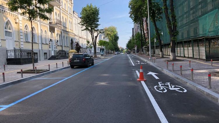 Уточняется, что на этой улице установили первые в Киеве велопарковки, которые одновременно делают невозможным заезд автомобилей на тротуар.