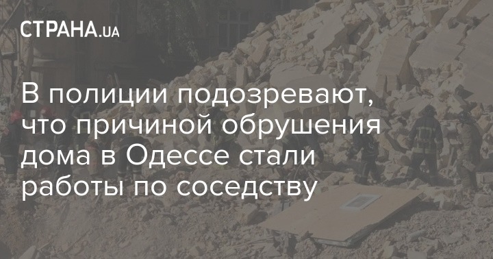 Причиной частичного обрушения стены четырехэтажного жилого дома в Одессе могли стать земляные работы, которые велись на стройплощадке рядом.