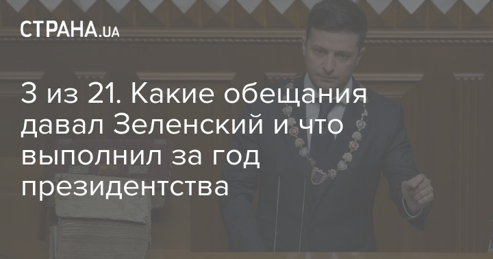 Из 21 обещания Зеленского за год его президентства выполнены только три - о рынке земли, снятии неприкосновенности с депутатов и принятии закона об импичменте президента.