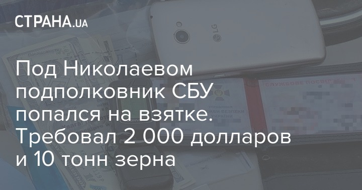 В Николаевской области прошло не совсем обычное задержание взяточника из спецслужбы. Силовики задержали подполковника областного управления СБУ за вымогательство взятки в размере $2 тысяч США и 10 тонн зерна.