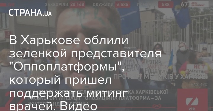 В Харькове облили зеленкой представителя "Оппоплатформы", который пришел поддержать митинг врачей. Видео