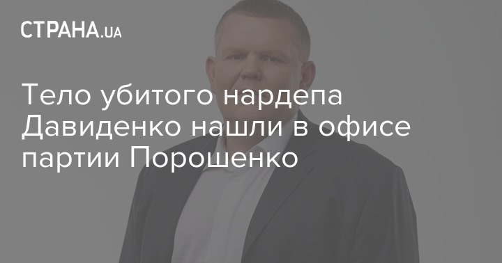 Тело убитого депутата Рады Валерия Давиденко было обнаружено в офисе партии "Европейская Солидарность". Об этом в субботу, 23 мая, информируют источники "Страны".