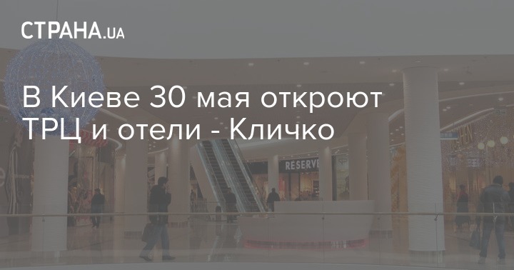 "Сегодня Комиссия по ЧС приняла решение про открытие в столице ТРЦ без работы развлекательных зон. Торгово-развлекательные центры в Киеве с соблюдением санитарных норм откроют с субботы, 30 мая. Также с 30 мая могут начать работу и гостиницы, кроме хостелов", - сказал Виталий Кличко.