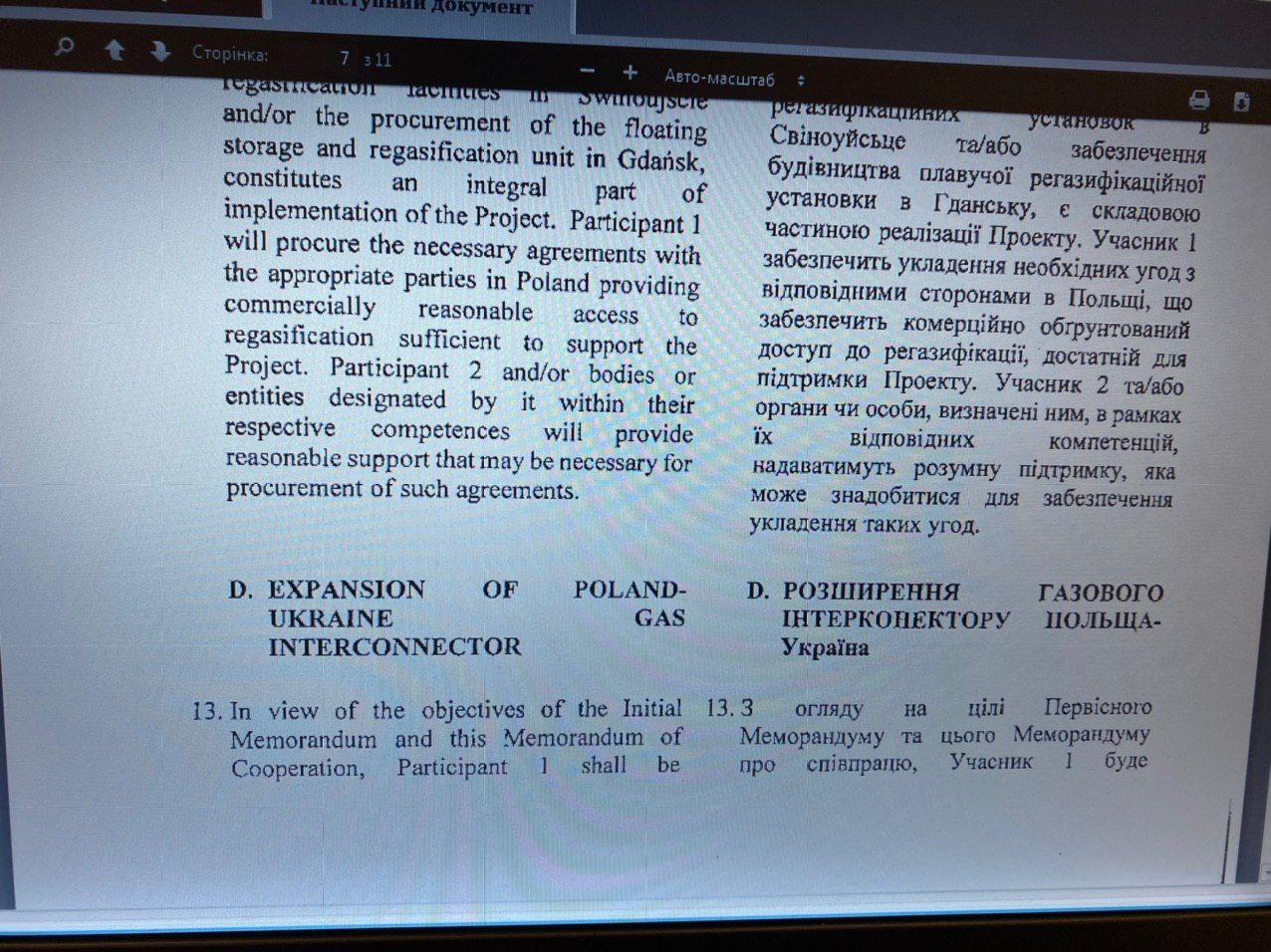 Подписанный Меморандум также предусматривает "построение новой газовой инфраструктуры между Польшей и Украиной".