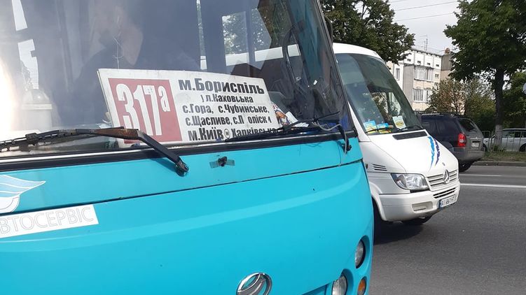"Сегодня в 9:30 водитель маршрута 317а "ст. м. Харьковская — Борисполь" в грубой форме отказал в проезде моему мужу, участнику АТО/ООС", — написала она.