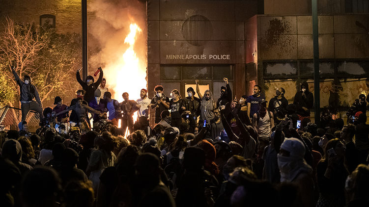 Так, в ночь с 28 на 29 мая ситуация возле 3-го полицейского участка Миннеаполиса обострилась. Протестующие бросали в него камни и подожгли его.