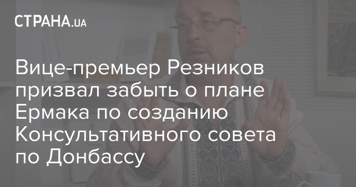 Вице-премьер Резников призвал забыть о плане Ермака по созданию Консультативного совета по Донбассу