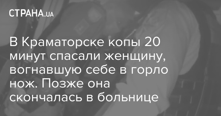 В Краматорске патрульные полицейские спасали жизнь женщине, которая воткнула себе в шею нож и истекала кровью. Правоохранители 20 минут до приезда медиков останавливали кровотечение и успокаивали детей раненой. Об этом на своей странице в соцсети написал замминистра МВД Антон Геращенко.
