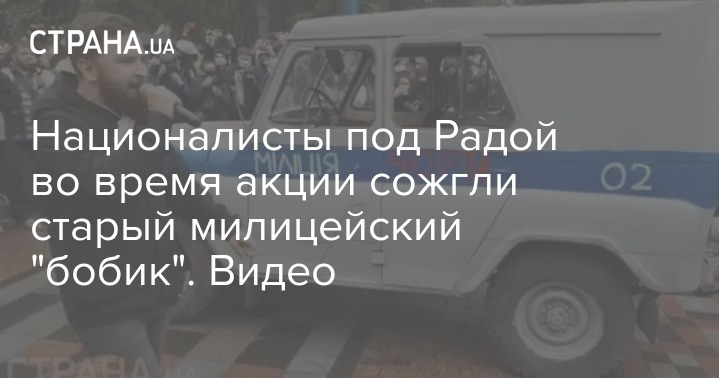 Националисты под Радой во время акции сожгли старый милицейский "бобик". Видео