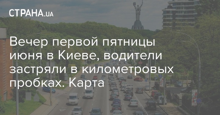 Вечер первой пятницы июня в Киеве, водители застряли в километровых пробках. Карта