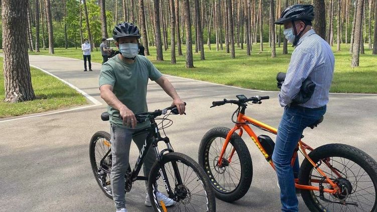 Зеленский приехал на встречу с журналистами на велосипеде. Фото: nv.ua