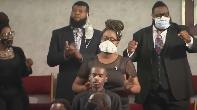 В городе Рейфорд, что в Северной Каролине (США), состоялась вторая поминальная служба по убитому полицейским афроамериканцу Джорджу Флойду. Церемония прошла в традиционном жанре госпел, когда все присутствующие поют и танцуют во время молитв и обращений к богу.