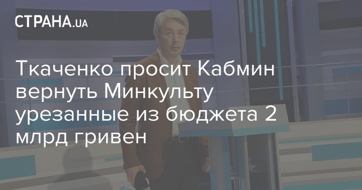 Министр культуры и информационной политики Александр Ткаченко просит правительство вернуть из государственного бюджета в Минкульт 2 млрд гривен, которые были перераспределены на другие нужды.
