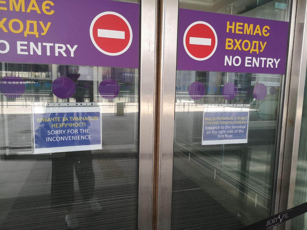 При въезде и выезде с территории аэропорта "Борисполь" дежурит полиция. Правда, машины не досматривают и температуру пассажиров не проверяют. Заезд на верхний ярус Терминала D перекрыт. Возле нижнего яруса также стоит полицейская машина.