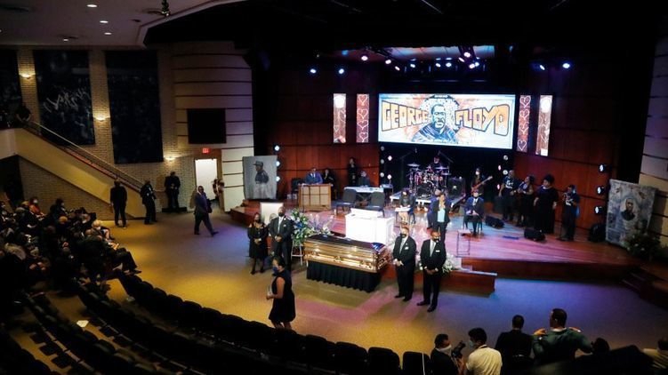 Церемония отпевания Джорджа Флойда состоялась в церкви The Fountain of Praise. Надгробную речь произнес активист за гражданские права чернокожих, баптистский священник и бывший советник Белого дома при экс-президенте Бараке Обаме Альфред Чарльз Шарптон-младший.