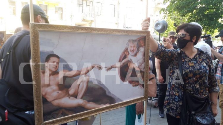 Они развернули выставку картин, которые высмеивали президента Зеленского, генпрокурора Венедиктову и олигарха Коломойского.