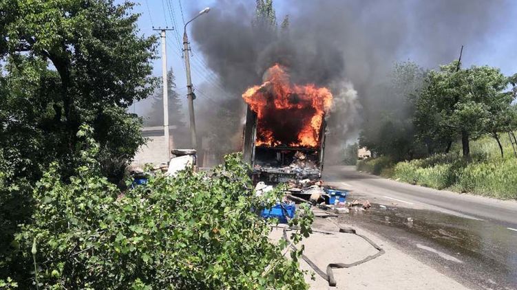 По словам водителя грузовика, он двигался в Кривой Рог для разгрузки, но увидев в зеркало заднего вида дым, сразу остановился. Оценив масштаб задымления, водитель отсоединил тягач от прицепа и отъехал на безопасное расстояние. Огонь мгновенно охватил прицеп, уничтожив  его и весь груз.