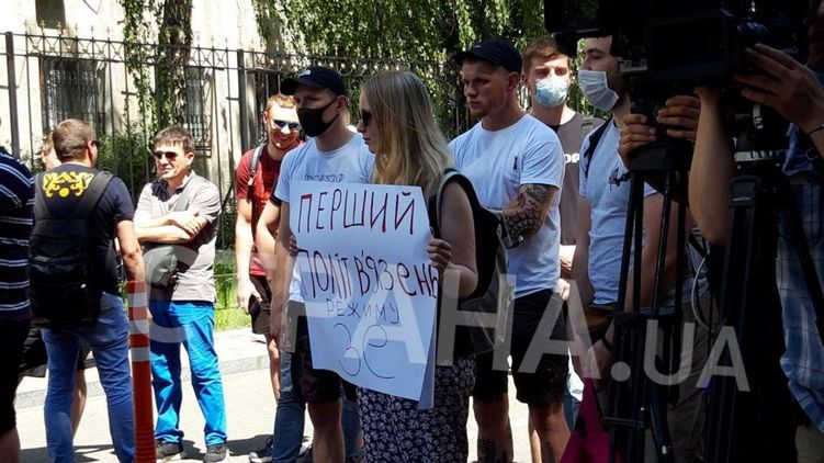 Группа поддержки встречает Стерненко под зданием СБУ. Фото: "Страна"