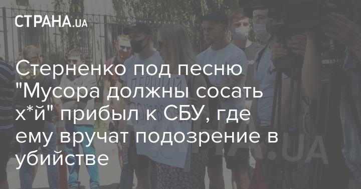 Как видно на видео, Стерненко подошел к зданию под аплодисменты своей группы поддержки, которая собралась плакатами около СБУ. Также поддержка радикала включила трек "Мусора должны сосать х*й".