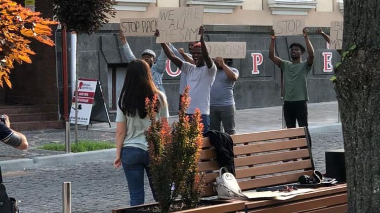 Утром 1 июня на улице Черновола в Тернополе прошла акция нескольких чернокожих, которые прошли с плакатами си сделали несколько снимков. На событие нелестно отреагировал депутат франции "Свобода", предложив депортировать протестующих.