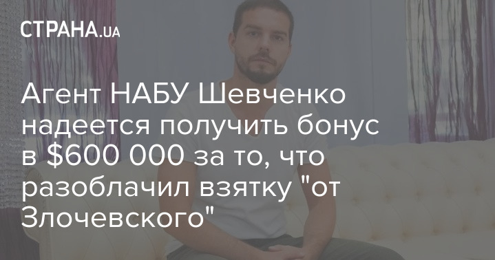 Агент Национального антикоррупционного бюро Украины (НАБУ) Евгений Шевченко, через которого, Николай Злочевский, по версии следствия, передавал руководству НАБУ и САП взятку в $6 млн, рассчитывает на получение 10% от ее суммы в качестве вознаграждения за успешно проделанную работу под прикрытием.