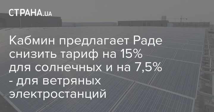 Кабмин предлагает Раде снизить тариф на 15% для солнечных и на 7,5% - для ветряных электростанций