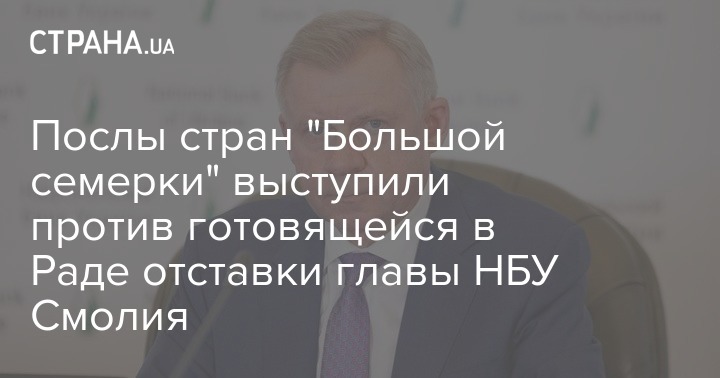 После подготовки проекта постановления профильного комитета Рады о докладе главы НБУ, связанного с подготовкой отставки правления Нацбанка во главе с Яковом Смолием, послы стран "Большой семерки" в Украине предостерегли парламент от вмешательства в деятельность НБУ.