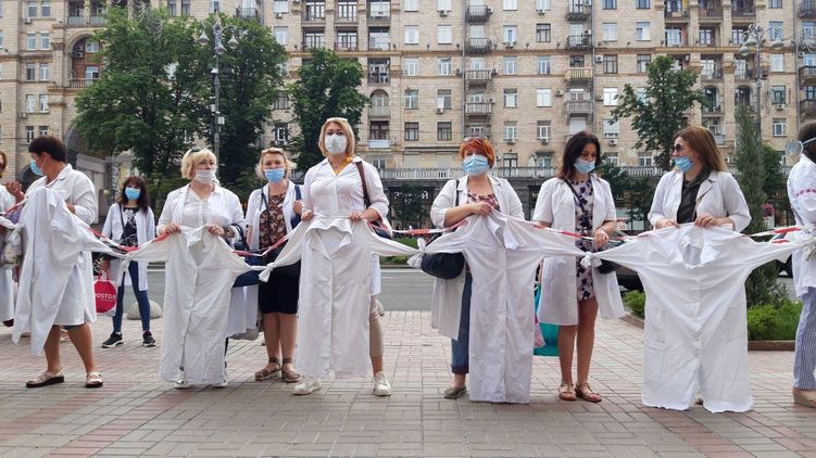 В Киеве проходит акция протеста врачей, которые лишились зарплат из-за медреформы. Фото: "Страна"