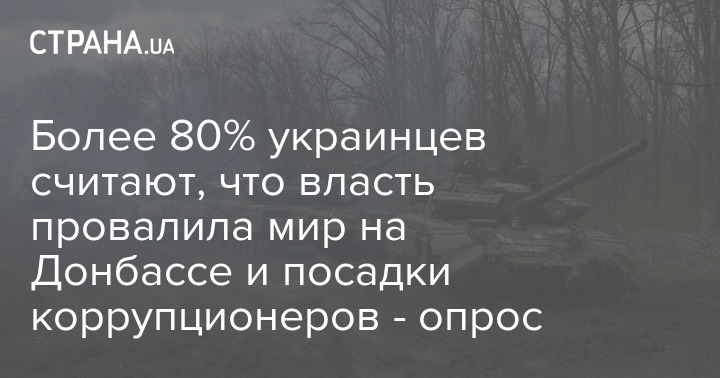 Большинство украинцев волнует разрешение военного конфликта на Донбассе, однако более 80% жителей страны признают провал действующей власти в этом вопросе. Также, по мнению более 80% украинцев, она не была успешна в вопросе посадок коррупционеров.