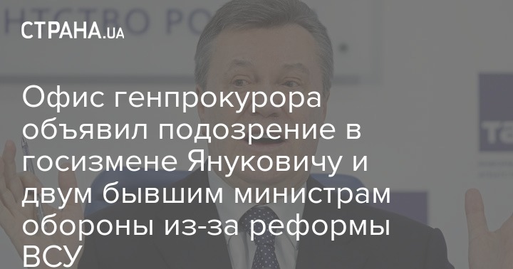 Под процессуальным руководством прокуроров Офиса генерального прокурора сегодня сообщено о подозрении бывшему президенту Виктору Януковичу и двум экс-министрам обороны Украины. Их подозревают в совершении государственной измены (ч. 1 ст. 111 Уголовного кодекса Украины).