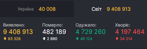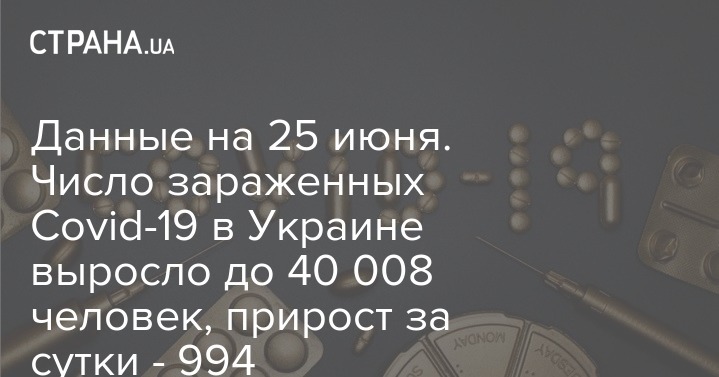 По состоянию на утро четверга, 25 июня, число зараженных коронавирусом в Украине выросло до 40 008 человек. Вчера, 24 июня, в стране было зафиксировано 39 014 заболевших. Таким образом, прирост за сутки составил 994 человека. Это новый антирекорд.