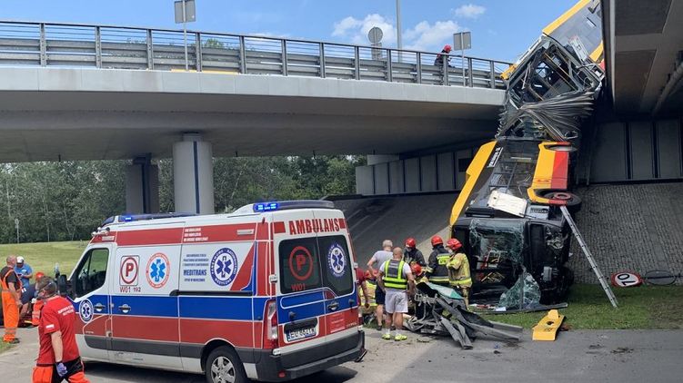 В Варшаве автобус упал с моста, два человека погибли, около 30 - пострадали. Фото