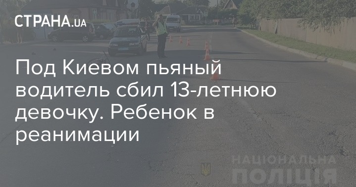 В селе Ковалевка Васильковского района под Киевом пьяный водитель сбил 13-летнюю девочку на велосипеде. Ребенок в реанимации, водитель задержан.