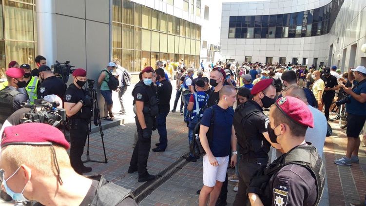 Во время заседаний у здания суда происходили столкновения сторонников Стерненко с полицией и задержания.