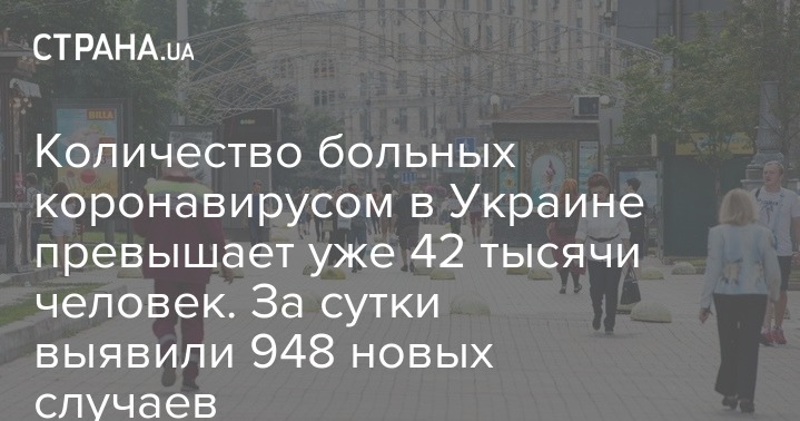 По состоянию на утро субботы, 27 июня, число зараженных коронавирусом в Украине выросло до 42 065 человек. Вчера, 26 июня, в стране было зафиксировано 41 117 заболевших. Таким образом прирост за сутки составил 948. Это на 161 меньше вчерашнего антирекорда (1109 человек).