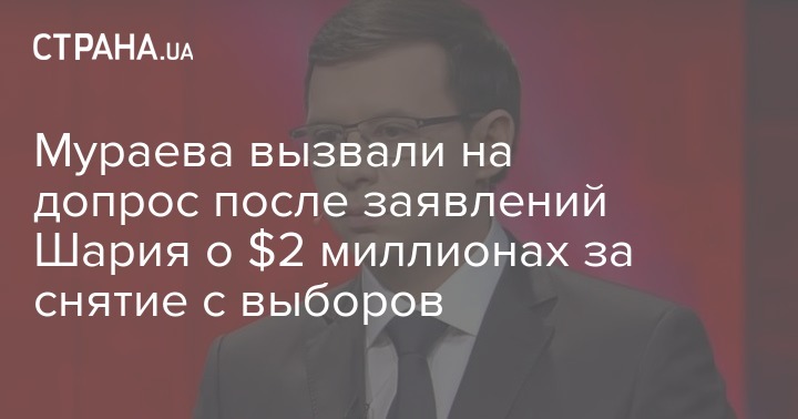 Мураева вызвали на допрос после заявлений Шария о $2 миллионах за снятие с выборов
