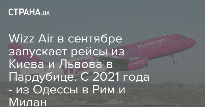 Так, с 1 сентября 2020 года Wizz Аir запускает рейсы из Киева и Львова в Пардубице (Чехия), а с марта 2021 года - из Одессы в Милан, Рим (с 29 марта), и Болонью (с 30 марта). Стоимость билета без багажа начинается от 579 гривен.