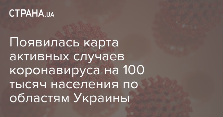 Появилась карта активных случаев коронавируса на 100 тысяч населения по областям Украины