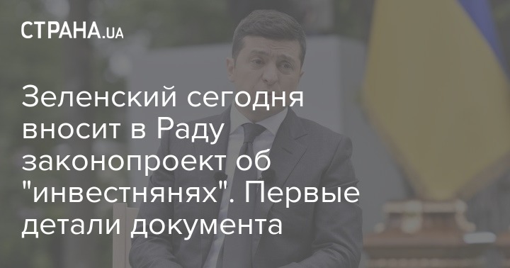 Зеленский сегодня вносит в Раду законопроект об "инвестнянях". Первые детали документа
